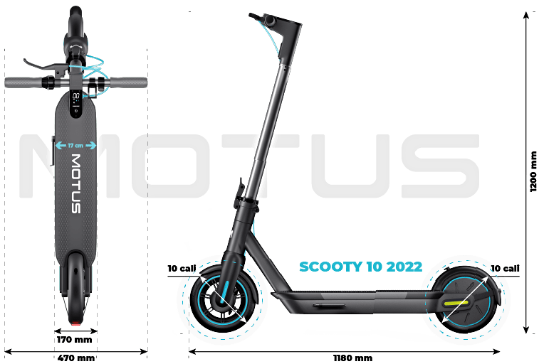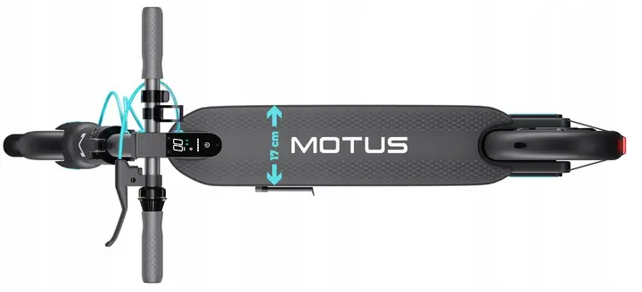 Konstrukcja Motus Scooty 10 2022 dostosowana jest również do wysokich osób - kierownica na wysokości 120 cm umożliwia podróżowanie w wyprostowanej pozycji ciała. Do tego deck o szerokości 17 cm pozwala na ułożenie obydwu stóp obok siebie, co wpływa na stabilność i komfort jazdy, a duże koła o średnicy 10’’gwarantują dobrą przyczepność i ułatwiają wjazd na krawężniki, amortyzują wstrząsy i sprawiają, że wyboje są mniej wyczuwalne.