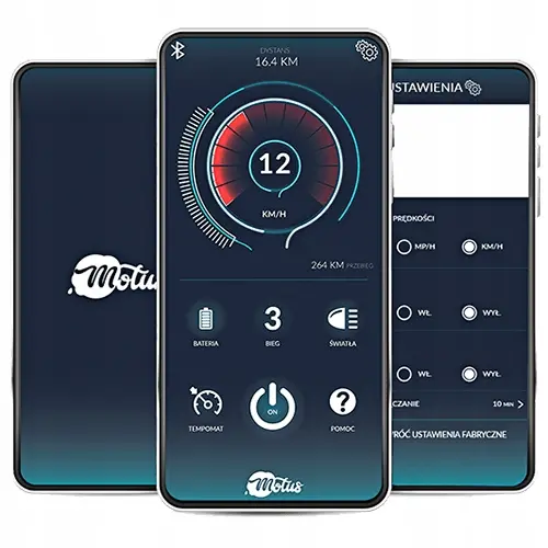 Aplikacja w wersji na Android i iOS pozwala zweryfikować dotychczasowy przebieg, a więc ilość przejechanych wszystkich kilometrów. Jeśli wolisz ustawić parametry jeszcze przed jazdą, w aplikacji możesz włączyć światła hulajnogi elektrycznej, a po podróży wyłączyć sprzęt. Znajdziesz tu również opcję ustawienia biegu, tempomat i weryfikację prędkości.