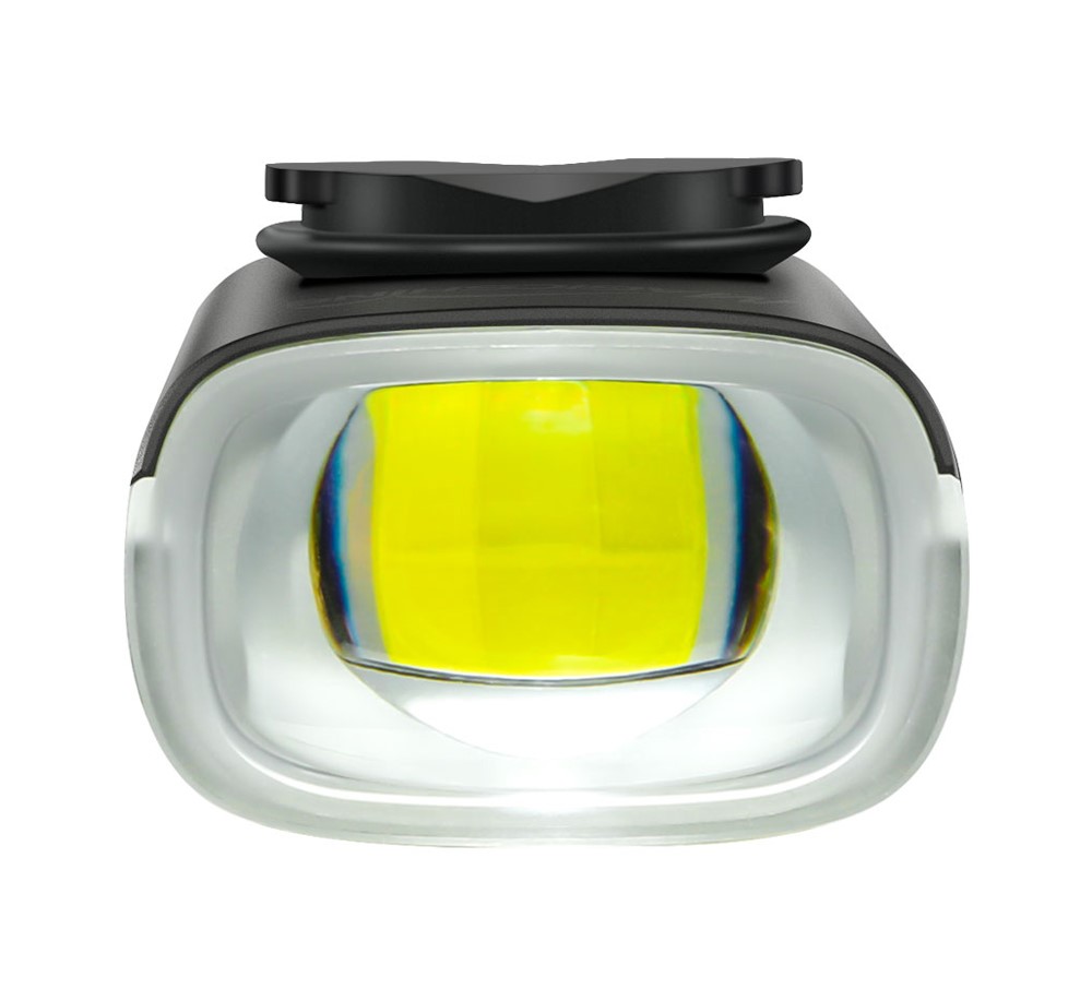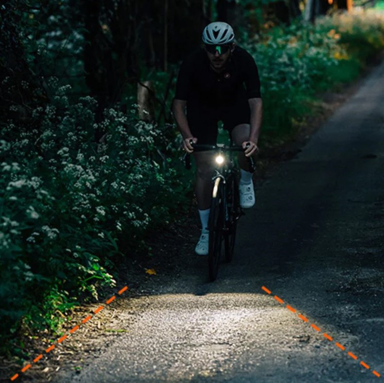 - Kompaktowy montaż pod kierownicą: lampka jest bardzo mała i lekka, a dedykowany uchwyt mocuje ją pod komputerem rowerowym (np. Garmin, Wahoo), oszczędzając miejsce na kierownicy (tzw. out-front mount)