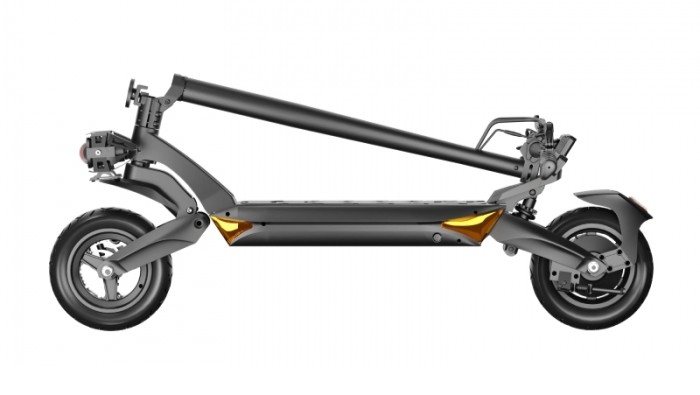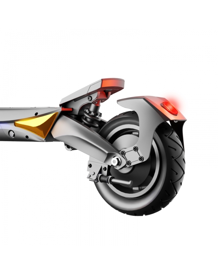 System amortyzacji sprężynowej w tym modelu oparty jest na wahaczach, dzięki czemu hulajnoga doskonale niweluje wszelkie wstrząsy podczas jazdy po nierównym terenie. To pozwala na komfortowe podróżowanie i stabilne prowadzenie. Dodatkowo, wysoki prześwit sprawia, że nie zmęczysz się podczas jazdy po wybojach. Ból kolan i nadgarstków już Cię nie dotyczy!
