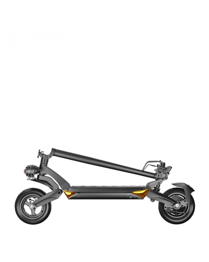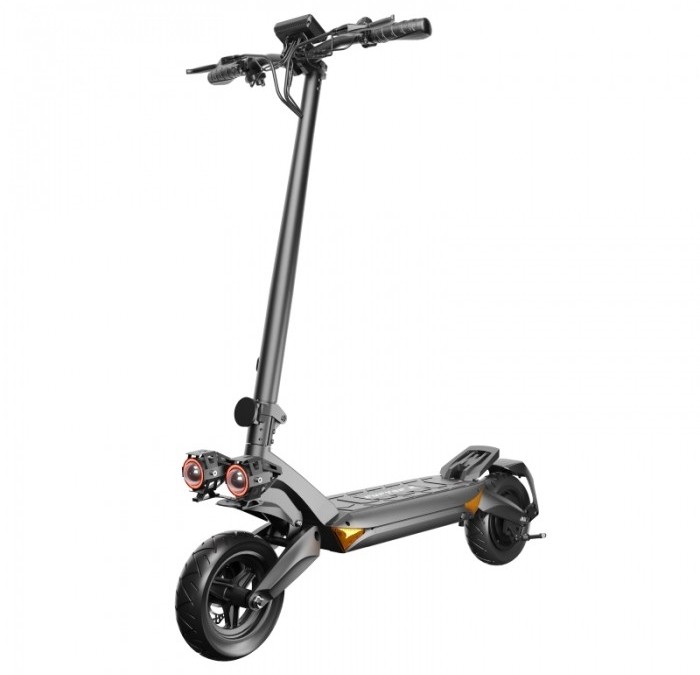Hamulce tarczowe o średnicy 140 mm zapewnią Ci pełną kontrolę i pewność nawet w nagłych sytuacjach. Pomogą w tym też grube, 10-calowe opony bezdętkowe, które dbają zarówno o przyczepność, jak i o kontrolę nad pojazdem. Dzięki nim będziesz mógł pewnie pokonywać nawet bardzo ostre zakręty i manewrować w warunkach, gdzie inne hulajnogi dawno by wymiękły. Ponadto, sygnalizację zamiarów wykonywania manewru skręcania, wymijania lub zmiany kierunku umożliwią Ci zamontowane kierunkowaskazy.