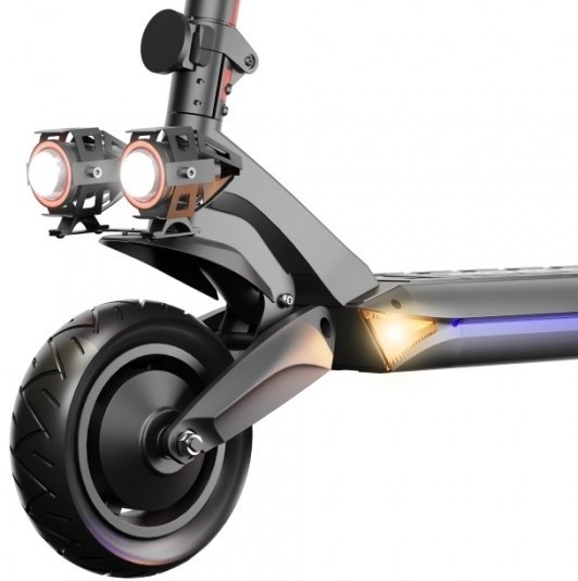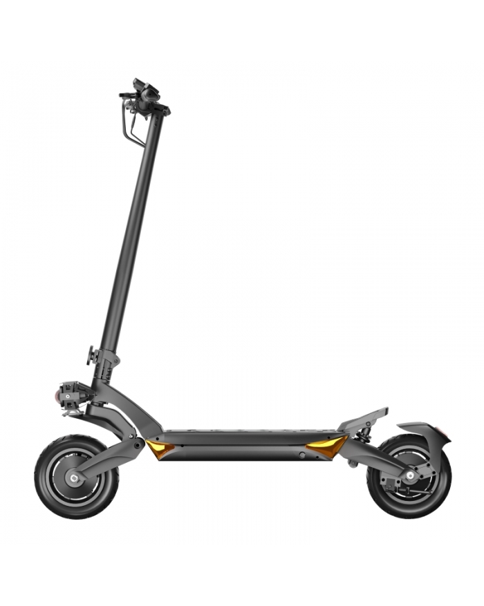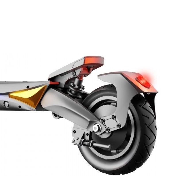 W okiełznaniu tak potężnej mocy pomoże amortyzacja sprężynowa oparta na wahaczach w połączeniu z 10-calowymi pompowanymi kołami z systemem bezdętkowym, dzięki czemu unikniesz bólu nadgarstków i kolan, a do tego bez większych problemów pokonasz mniejsze przeszkody i nierówności. O Twoje bezpieczeństwo zadbają również hamulce tarczowe o średnicy 140 mm, gwarantując doskonałą siłę hamowania w każdych warunkach. Ruptor R6 V3 wyposażony jest też kierunkowskazy, które informują wszystkich o Twoich zamiarach – niezależnie od tego czy chcesz skręcić, czy wyminąć inną hulajnogę.