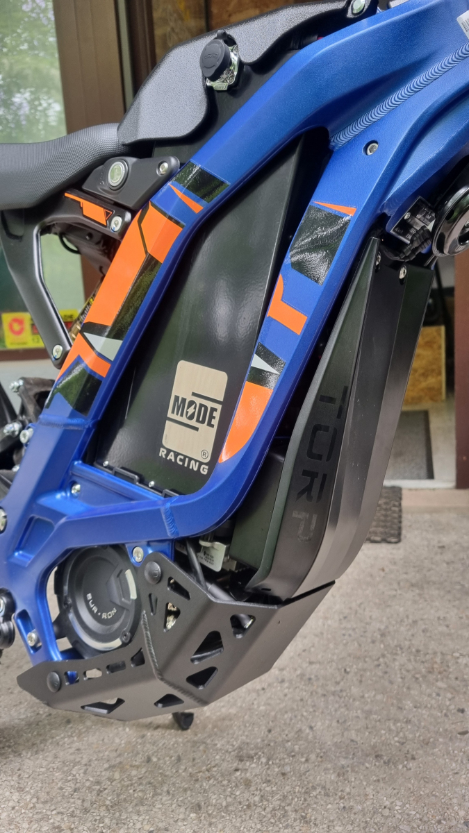 Give your SurRon reliable protection with our enhanced Hard Enduro engine guard. Crafted from 3mm aluminum, it's significantly thicker and more durable than original guards. The completely redesigned structure not only protects the engine but also your vehicle's frame. Plus, it's compatible with both the stock engine and the Torp TM25. This is the ideal choice for any off-road enthusiast seeking maximum protection and durability.