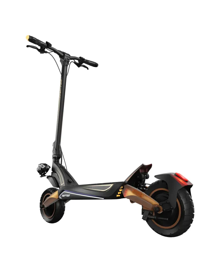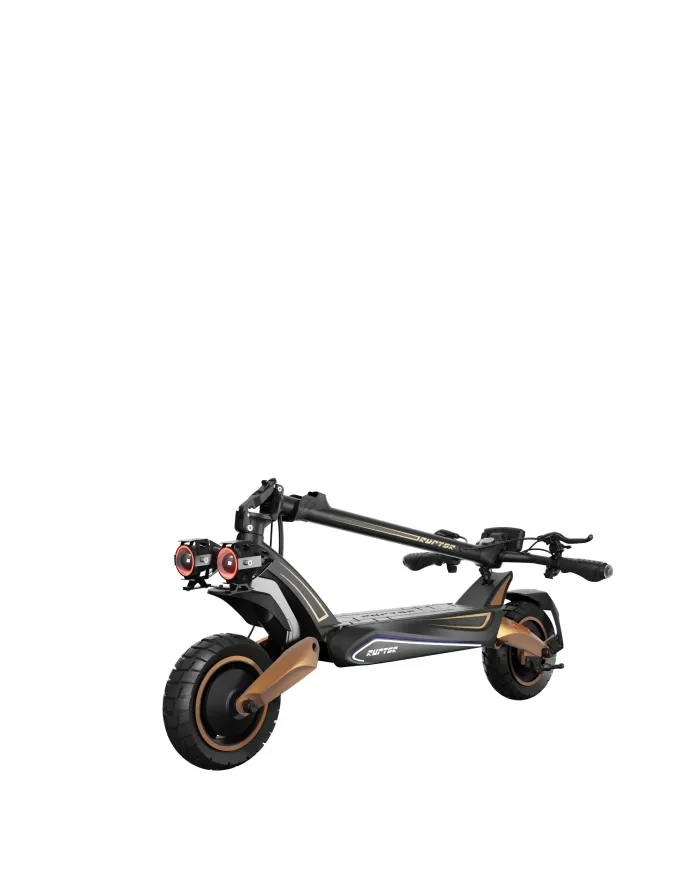 Mimo swoich ogromnych możliwości, Ruptor R6 V4 pozostaje niezwykle mobilny i kompaktowy. Dzięki potrójnemu systemowi zabezpieczeń możesz złożyć kierownicę w zaledwie kilka chwil, co sprawia, że hulajnoga jest zawsze gotowa do transportu. Bez problemu zmieści się do bagażnika samochodu, windy czy biura, łącząc w sobie potężną moc z praktyczną funkcjonalnością.